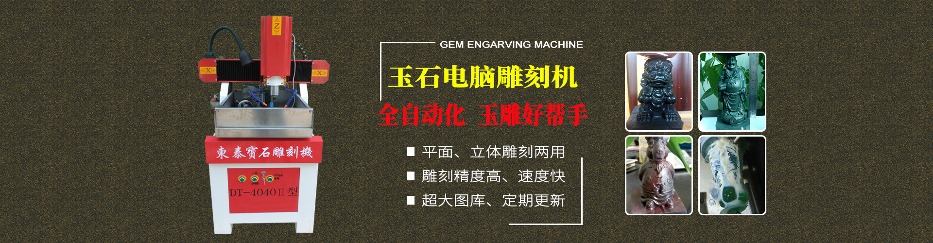 东泰生产出的宝石机械设备可用于加工晶体杂石、玛瑙玉石、人造石、其他石类及贝壳、骨头化石等等,加工出的产品孔位精确、损耗小、速度快、效率高;雕刻品细致、精美,大大降低了成本,提高了效率,深受宝石行业商家的欢迎。
