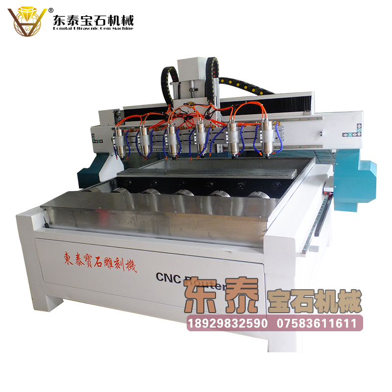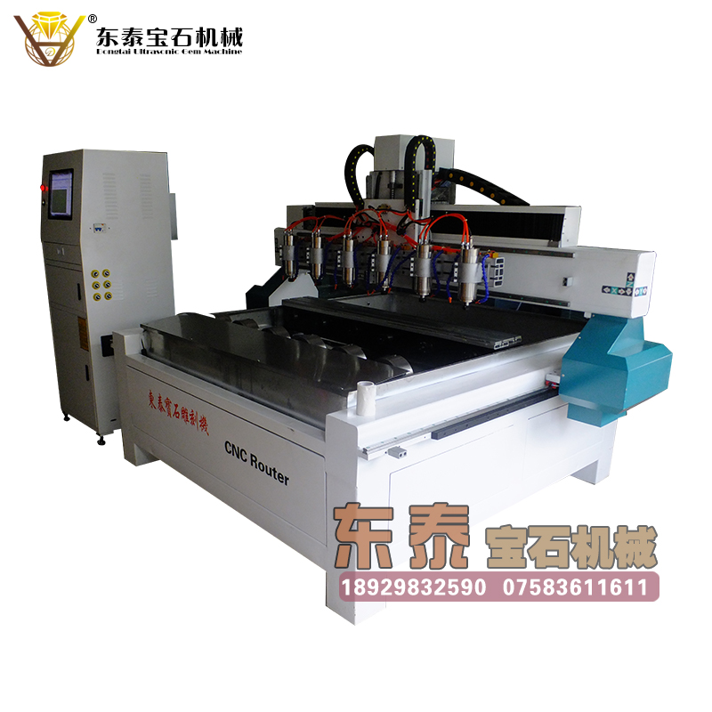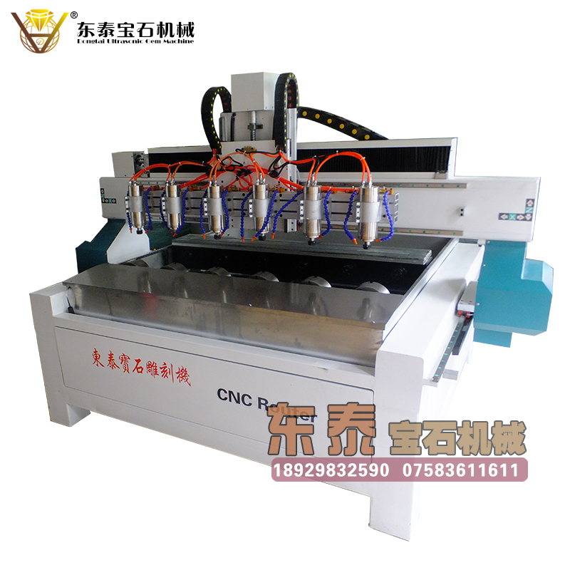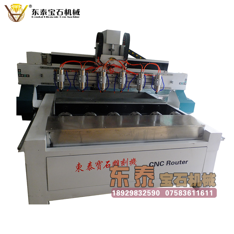 功能:东泰超声波宝石机械生产的电脑雕刻机使用进口丝杆,模具主轴电机,机器在使用过程中,精度高,速度快,不易出现故障。机器在生产各种宝石产品时方便快捷、快捷、简单、故障率低,操作方便。电脑加装防护机箱,使用四爪夹具,立体雕刻更牢固,一台机器同时生产6个产品,工作效率高,成本更低,每个主轴独立控制,可以同时6个主轴工作,也任选其中任意一个或几个主轴工作,灵活方便。 雷塞混合伺服电机,Y轴齿条传动,XZ丝杆传动,雕刻长度300毫米,直径150毫米。