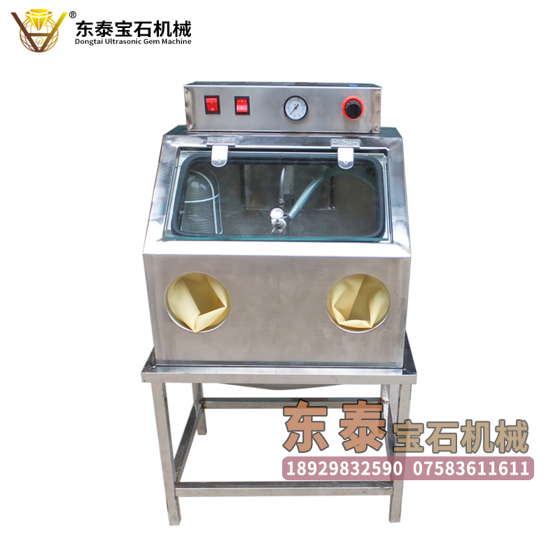 除尘风机:220V/550W 调压阀:SNS 4分 电磁阀:SNS 4分全铜,耐气压为12KG 电压表:(SAS)全不锈钢,耐压10KG 高压气管:耐磨材料,耐气压为12KG 硼砂枪:碳化硼喷嘴,抗高压耐磨 照明灯:节能灯220V/60W 功能:东泰超声波宝石机械生产的喷砂机,主要用来对宝石产品表面进行打磨处理,把宝石产品表面处理光滑和带有磨砂效果,操作简单,使用方便。