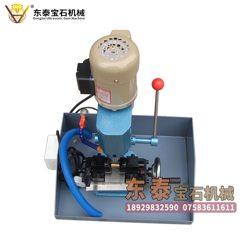 功能:东泰超声波宝石机械生产的台钻打孔机,可以用于高硬度的玉石圆珠进行钻孔,自带夹具,打孔精度高,可单向或双向打孔,转速为调节皮带轮进行调速,电机力度大,加工速度快,适用范围广,操作简便。打孔深度为0MM—20MM,使用改装过的夹头可以打圆珠、米珠类产品。