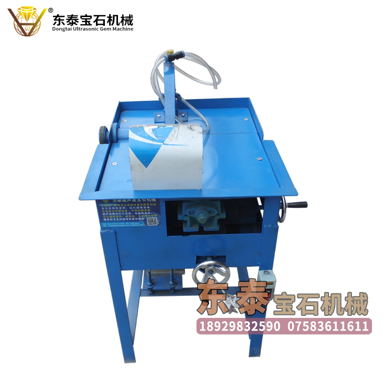 功能:东泰超声波宝石机械生产的自动小切机,结合了小切机和油切机的功能,一机两用,需要进行普通切割时,就把主板盖好,机器就可以当主轴在下小切机使用,进行普通石料切割,当需要进行标准开小片时,就可以把主板去掉,用下面的夹具,夹好石料,机器设有自动进刀和手动进刀两种方式,使用时根据实际情况,可以手动进刀也可自动进刀,这样开出来的片标准,和油切机一样效果,解决了开小片不准的情况。机器设有限位保护,机器切到最大限定位置后自动停止,以保护机器及工作安全。自动小切机方便,实用,简单。