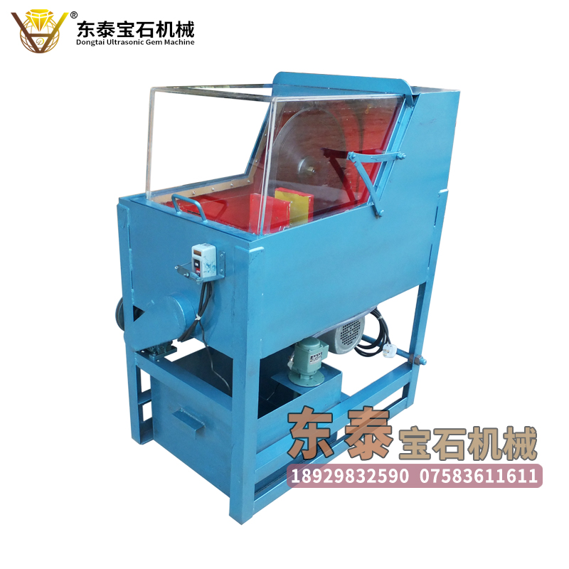 功能:东泰超声波宝石机械生产的自动型单刀密封油切机,采用优质轴承和轨道,切割宝石原料精度高,切割速度快,使用自动进刀和行程控制开关,安全可靠,只需要将宝石原料固定好在机器的工作台上,定准机器行程开关距离,机器在完成切割后,可自动停机,机器在运行过程中无需进行其它操作,一人可以操作5-6台,机器加有防护罩,使用过程中,安全、噪声小,无污染。采用油泵循环供应冷却润滑油,节省耗材,降低成本。