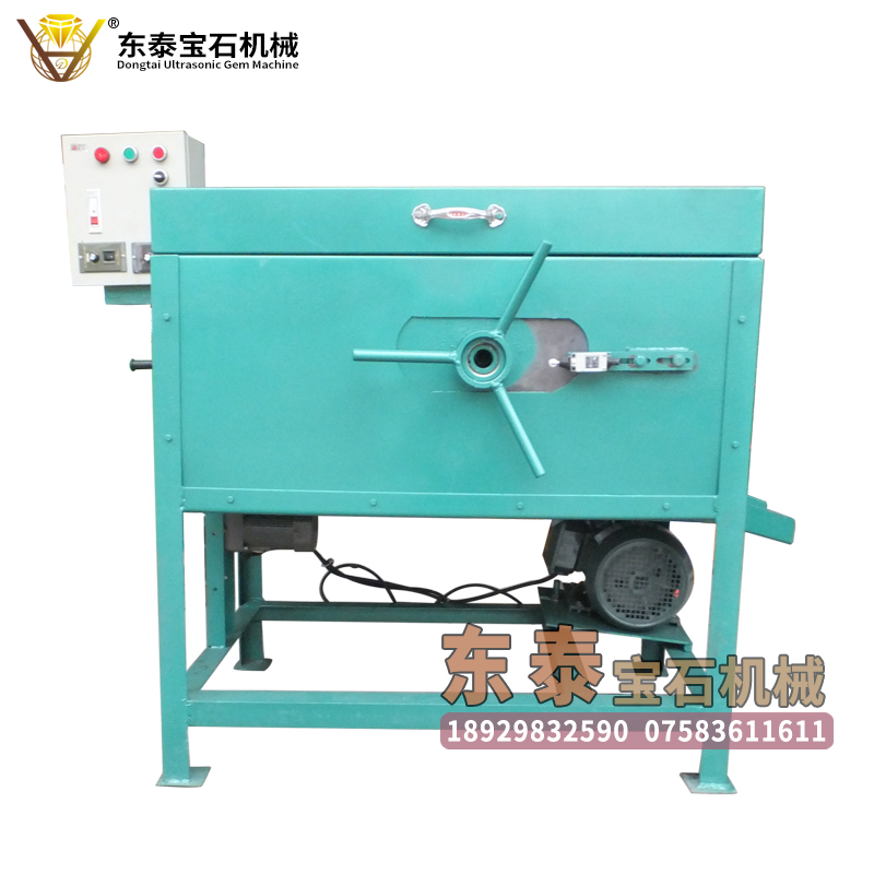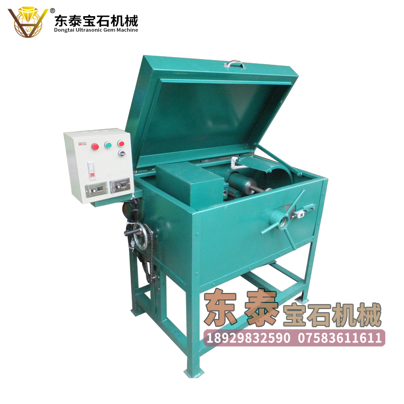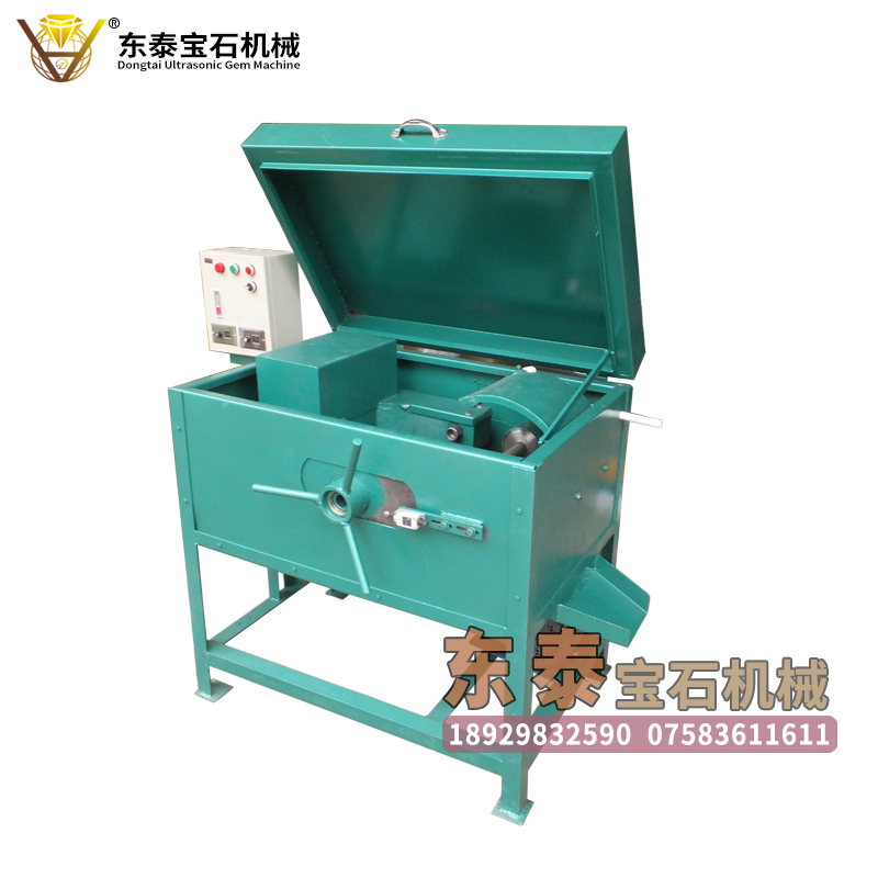 功能:东泰超声波宝石机械生产的自动旋转开片机,使用双电机及优质滑杆,切割精度高,速度快,机器加装有防尘盖,使机器在工作过程中切割油不外溅,噪音更小更安静。机器主滑动杆使用优质高精度滑杆,机器行程更平稳。机器进料分为手动和自动进料两种方式,工作人员可以根据生产情况来设定,机器自动进料时还可以根据生产要求进行调节进料速度,夹料主轴旋转也可以根据石料情况来进行调节旋转速度快慢,以达到最佳生产速度和质量。机器最大可以切割到直径25cm的石料,切割出最大直径25片料,厚度4——180mm。